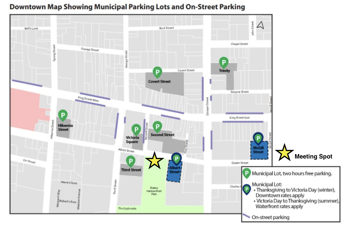 The tour will start at the Second Street Parking Lot, followed by a short walk to the Cobourg Harbour for stop number 1. Stop number 2 is at Victoria Park, a 7-minute walk from the Harbour. From there, we’ll head back to the parking lot and drive to stop number 3, Brook Creek Outfall. Carpooling is available.