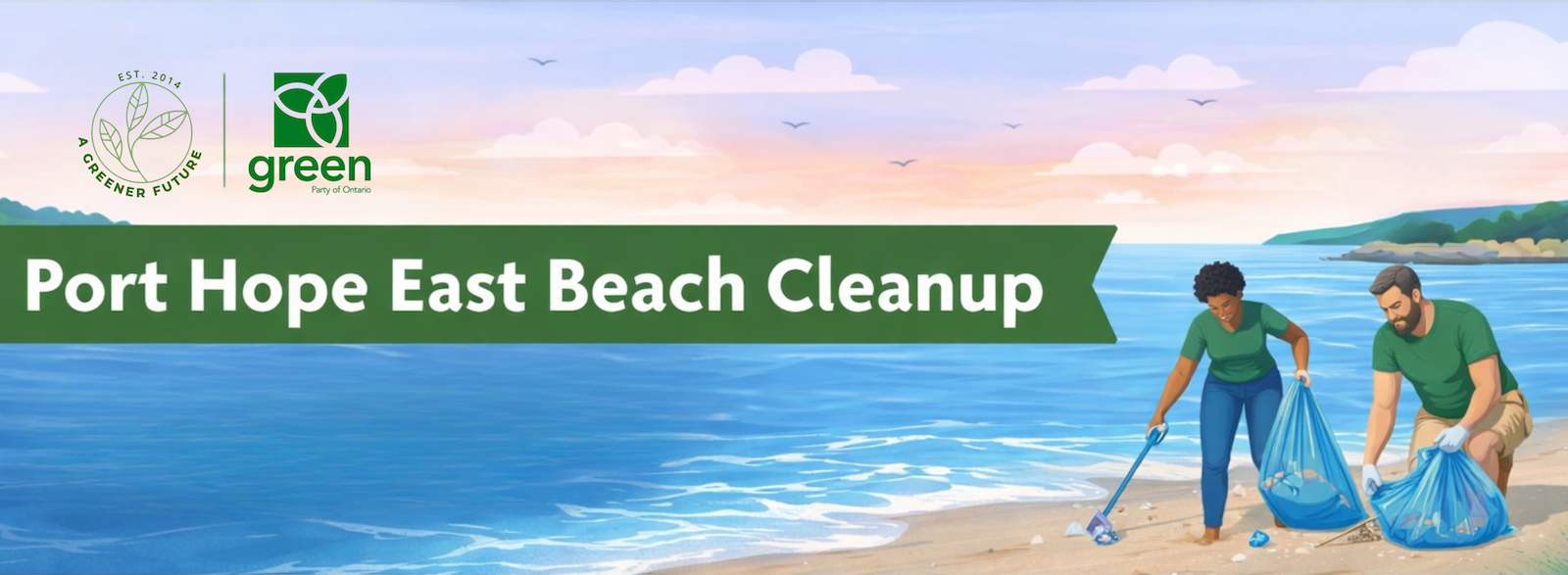 Let’s show some love to Port Hope East Beach. This cleanup is a simple way to take action locally: meet people, get outside, and make a real difference in our shared shoreline space. This event is in partnership wth the Green Party of Ontario and everyone is welcome to join.