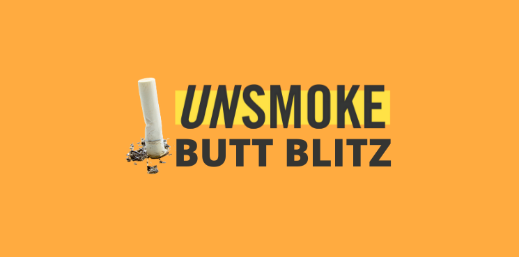 Pick up cigarette butts in the surrounding downtown area OR drop off butts you already collected at our collection point — look for the UNSMOKE flags and our epic butt collection display.